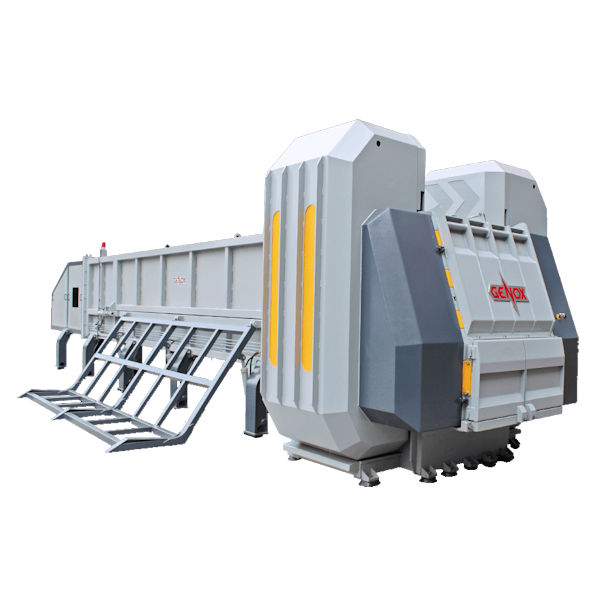 GeNox J-serie buis shredders zijn ontworpen voor het verwerken van kunststof buizen of kunststof profielen met een lengte van 6 meter en een maximale diameter van 1.200 mm. Het shredden vindt plaats door middel van vier assen en is een toonaangevende technologie. Met de beste snijrotortoewijzing vormen de vier assen de beste snijhoek. Afzonderlijk motorstartontwerp vermindert de invoer voor het elektriciteitsnet aanzienlijk. De snijas kan afzonderlijk worden aangestuurd om de bedrijfskosten van de machine te verlagen. Elke snijas bezit specifieke kenmerken op basis van de locatie om het beste snijeffect te bereiken. Het toevoersysteem is uitgerust met een hydraulische cilinder op meerdere niveaus, aangedreven en gecontroleerd door een efficiënt, stabiel en automatisch controlesysteem. De invoersnelheid kan worden geregeld voor het versnipperen van ander materiaal, zodat het doel van energiebesparing kan worden bereikt. De apparatuur heeft een compact en betrouwbaar ontwerp. Veilig controleren van deuren en deksels is ontworpen met een hydraulische openingsinrichting voor eenvoudig onderhoud..