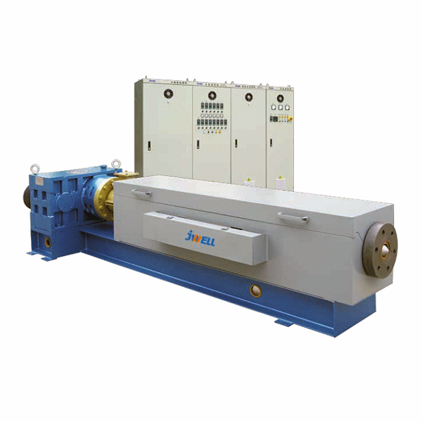 JWM serie extruders worden gebruikt voor de productie van filament uit PET, PA6, PA66, PP chips. Het LTM schroefontwerp staat garant voor een uitstekende meltkwaliteit. De hoogwaardige productie van de schroef en cylinder resulteert in een lange levensduur. De met schuine vertanding uitgevoerde overbrenging draagt bij aan de operationele stabiliteit en lage geluidsopbrengst. Overgedimensioneerde lagering is gemonteerd wat het asvermogen moeiteloos kan opnemen. Optioneel kan gekozen worden voor geimporteerde lagers en afdichtingen.
