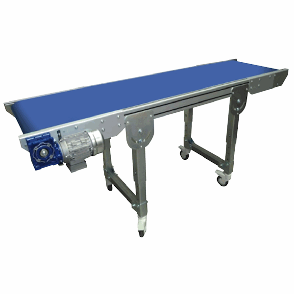 - Motor en overbrenging onder de transportband gemonteerd met ketting aandrijving